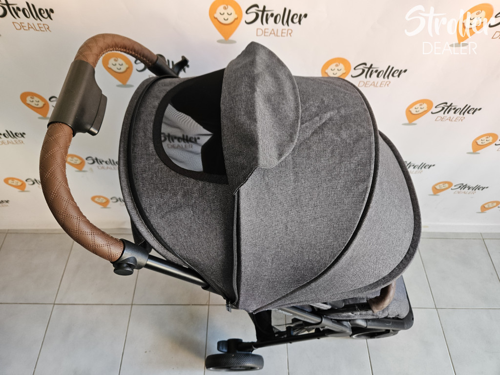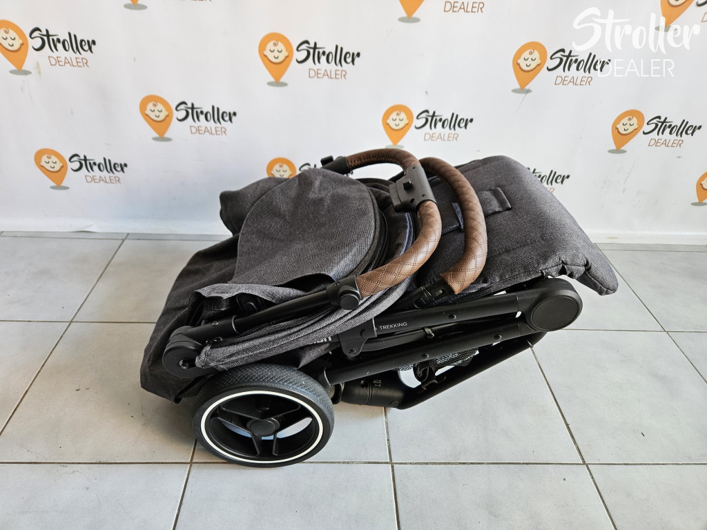 Unisex színű, kicsire csukható, könnyű babakocsi. Ez a "trekking" változat, mely terepre is ideális. Fél kézzel is könnyedén irányítható, háttámlája több fokozatban dönthető, külön vásárolható adapter segítségével, akár babahordozó is rátehető. Vállra akasztható hordozópánt nincs hozzá.