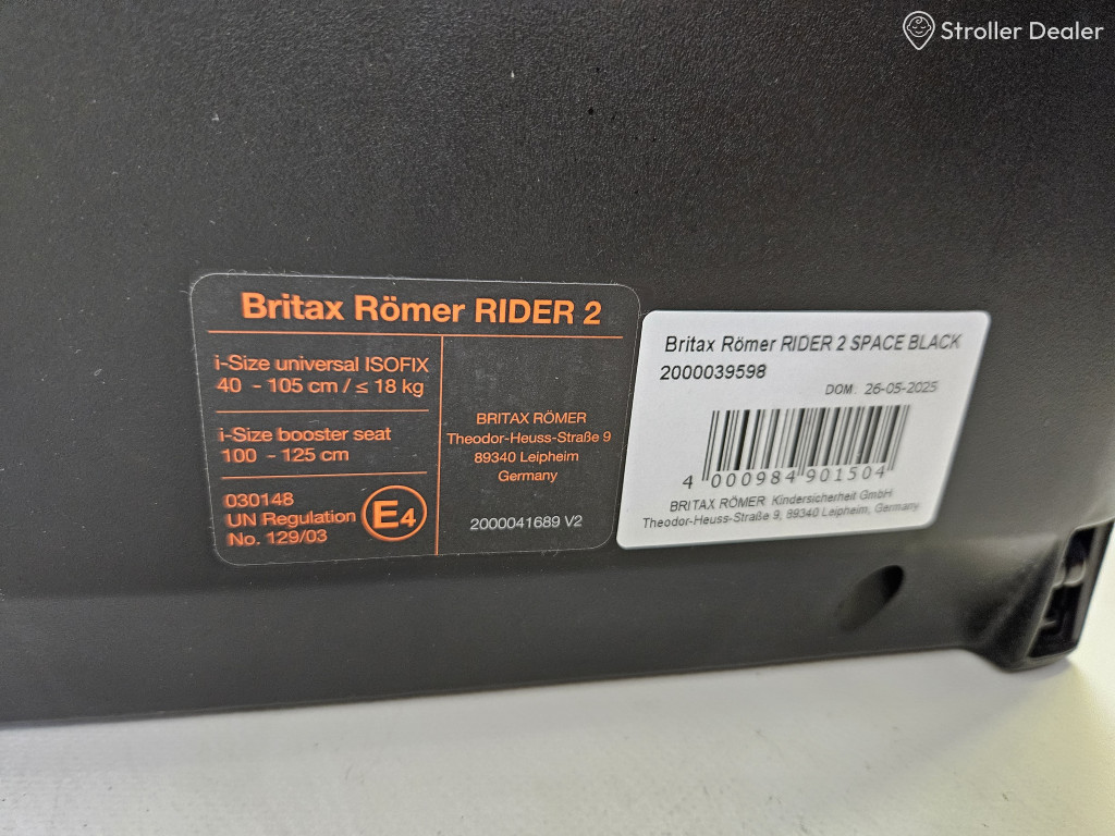 A Britax Römer Rider 2 gyerekülés modern i-Size szabványnak megfelelő, hosszú távra tervezett autósülés, amely 40–125 cm között, kb. 18 kg-ig használható. ISOFIX rögzítése és támasztólába stabil beépítést biztosít, miközben a mély oldalfalak és a többpontos biztonsági öv hatékony védelmet nyújtanak. A puha szűkítőbetét kényelmes tartást ad a kisebb babáknak, az állítható fejtámla pedig a növekedéshez igazodik. Dönthető kialakítása ideális alváshoz is, huzata levehető és mosható. 360 fokban, nagyon könnyen körbeforgatható.