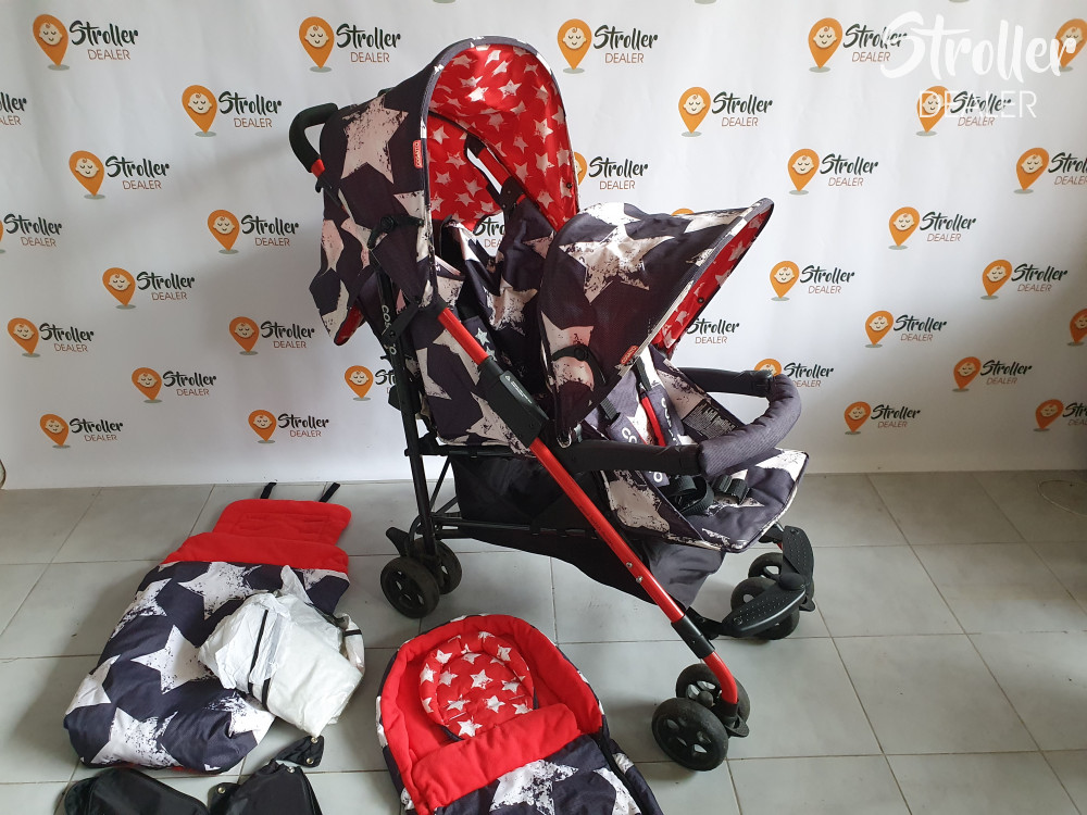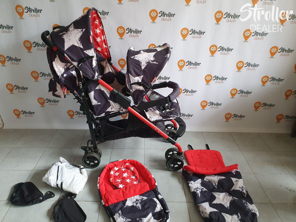 Ajánlott testvéreknek kis korkülönbséggel vagy ikreknek hat hónapos kortól. A hátsó ülés dönthető, ez újszülött kortól használható, az első nem dönthető, ez hat hónapos kortól. A fotókon látható kiegészítőkkel adom, a bundazsák a téli hidegben is melegen tartja a gyermekeket. Könnyen összecsukható és kinyítható.