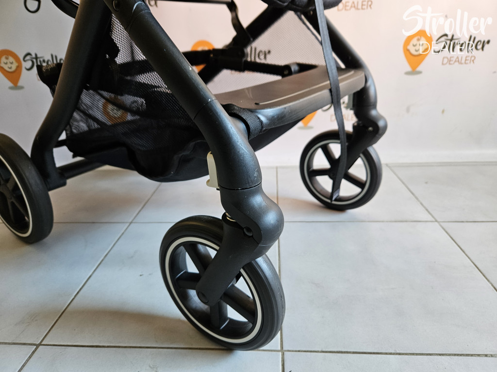 A legújabb övfeszítős modell, nagyobb kerekekkel. Egészen 22 kg-ig használható, adapter segítségével babahordozó is csatlakoztatható rá. Fél kézzel is könnyedén irányítható, garantáltan arra megy amerre szeretnéd. Egy mozdulat összecsukni és kinyitni, viszonylag kicsire csukható. Háttámlája több fokozatban dönthető, lábtartója állítható, huzata levehető és mosható. Váza használatból adódóan picit karcos.
