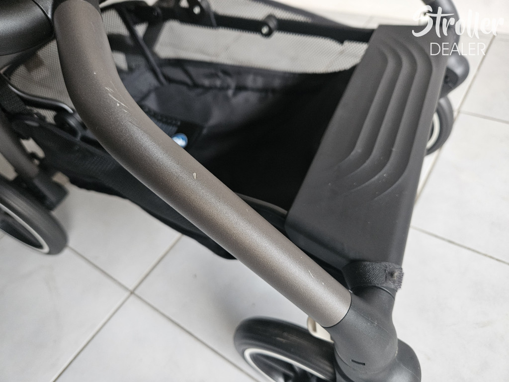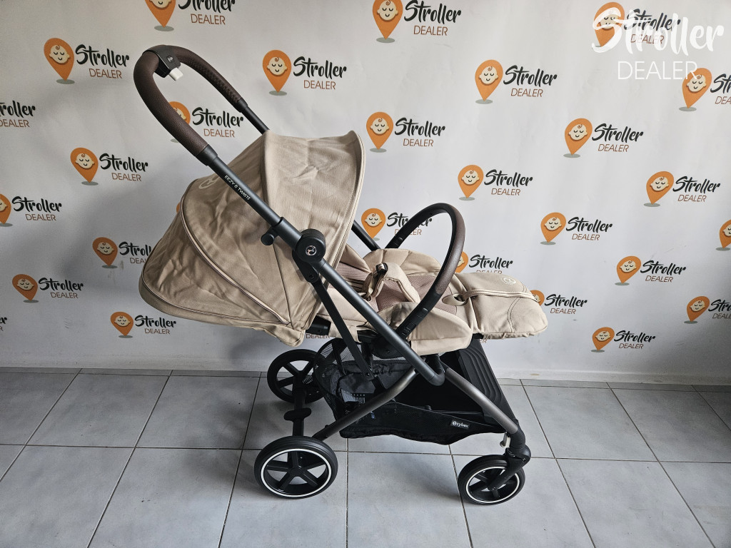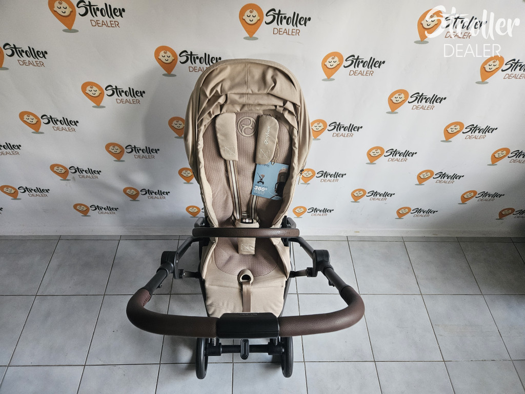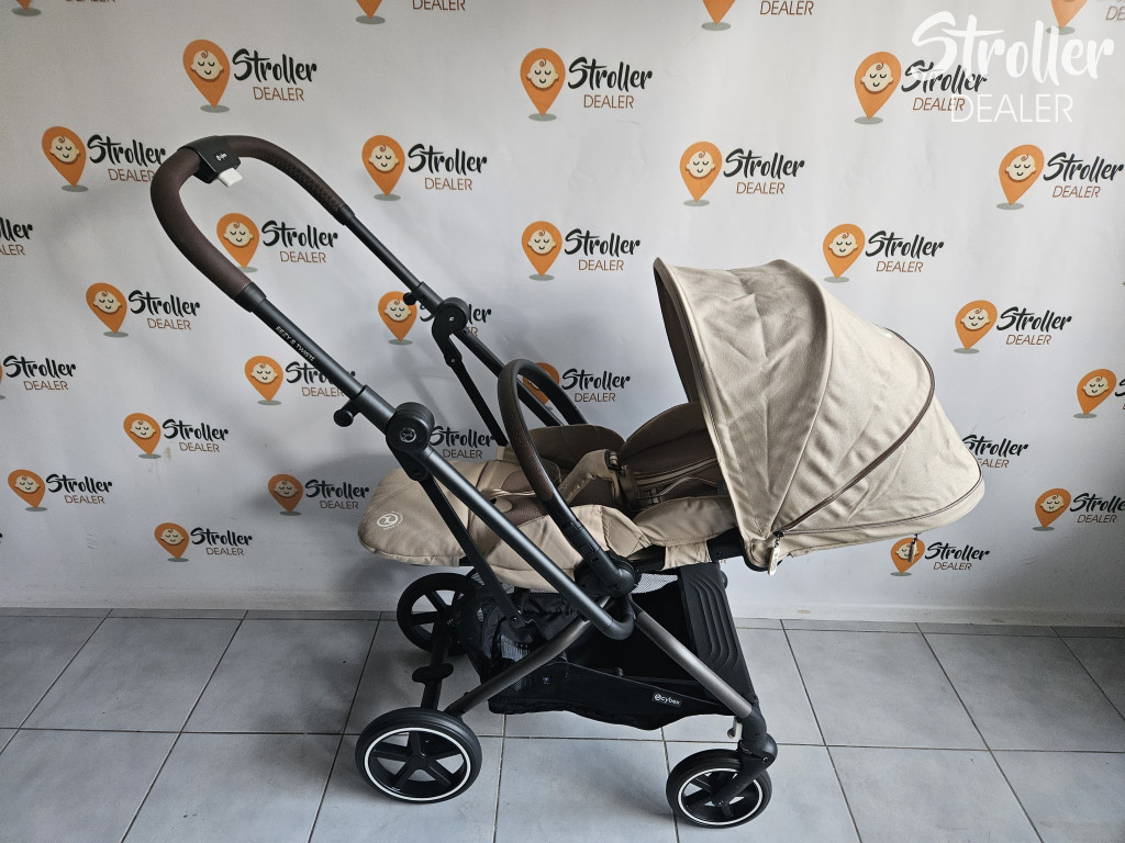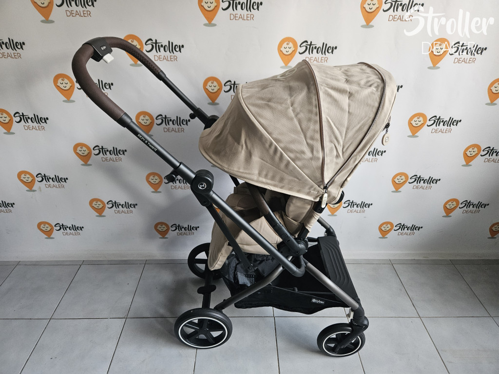 Nagyon szép állapotú, gyönyörű „almond beige” színű, kicsire csukható sportbabakocsi, mely terepen is jól boldogul a nagy kerekeivel. 360 fokban forgatható az ülőrész, így menetiránynak háttal és megegyezően is utazhat benne a gyermek. Álomkönnyen irányítható, akár fél kézzel is. A legtöbb babakocsival ellentétben, ez 22 kg-ig terhelhető. Háttámlája több fokozatban vízszintesig dönthető. Huzata levehető és mosógépben mosható.