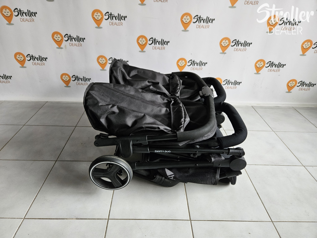 Könnyű, kicsire csukható ikerbabakocsi, mely ikreknek vagy kis korkülönbségű tesóknak is ideális választás. Kupolája nagyra nyitható, háttámlája vízszintesig dönthető. Mérete összecsukva 58x75,5x32 cm, nem foglal több helyet mint egy normál babakocsi.
