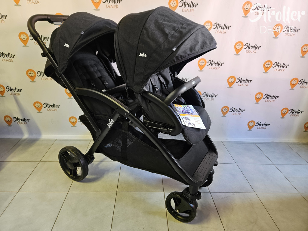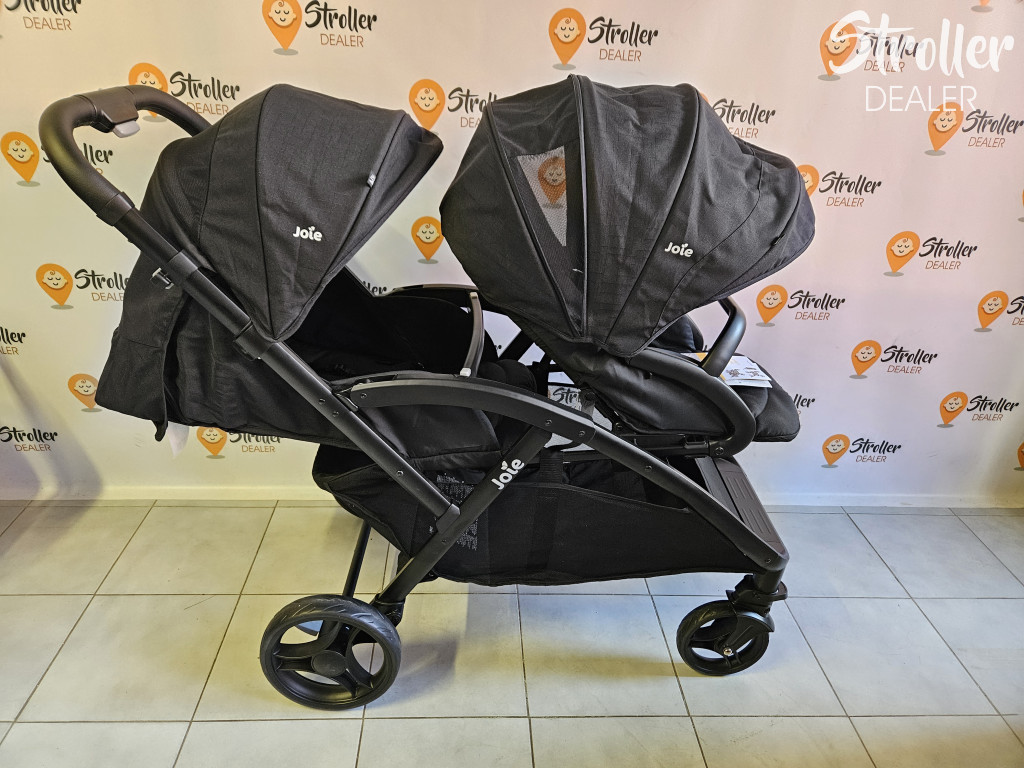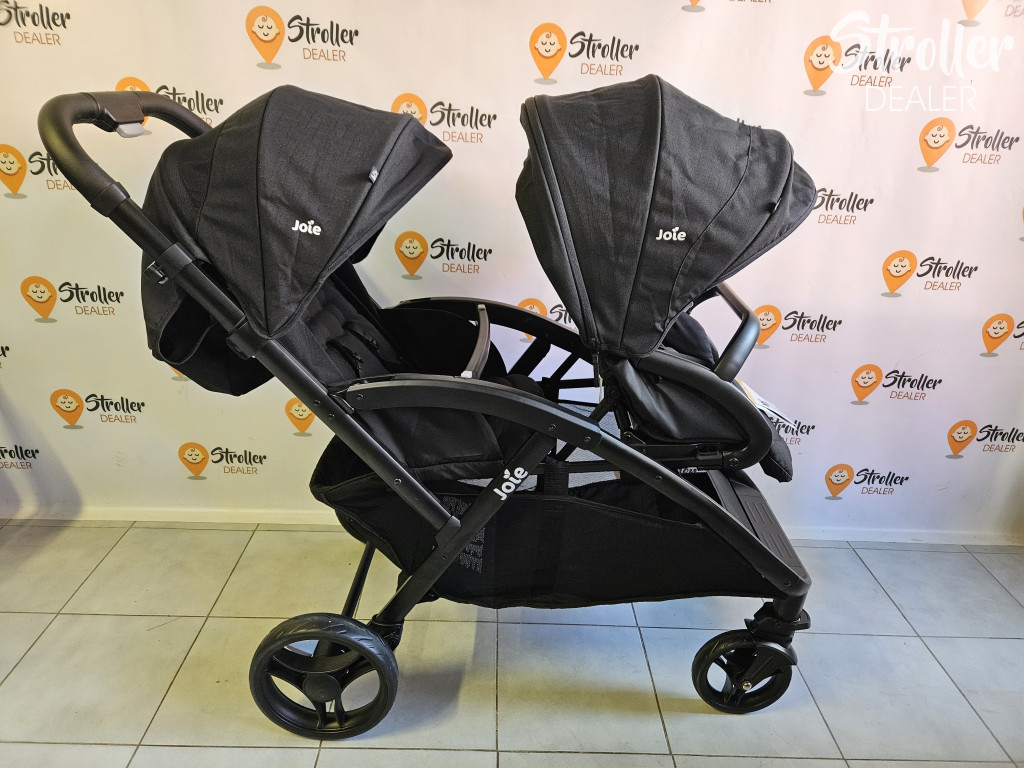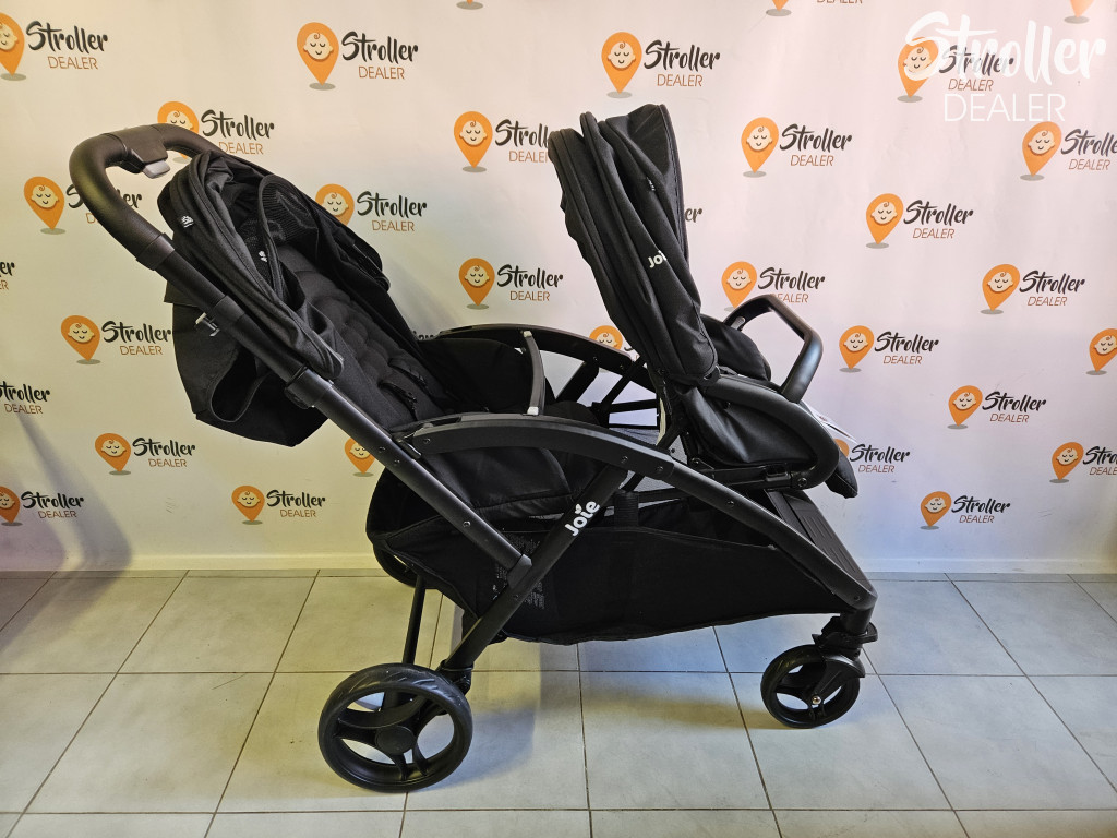 Könnyen irányítható, tömör kerekű iker / tesóbabakocsi keresi új kis tulajdonosait. Mindössze kb 10 kg a babakocsi súlya és összecsukva sem foglal nagy helyet. Mindkét ülés dönthető, a hátsó szinte vízszintesig, az első csak minimálisan. Kupolája nagyra nyitható, hátul szellőzővel ellátott. Joie babahordozó is csatlakoztatható hozzá. Nagyon szép állapotú, ez már a legújabb széria, aminek bőr a tolókarja és a háttámla állítója is továbbfejlesztett, egyszerűbben kezelhető.