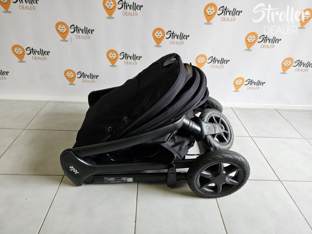 Újszerű babakocsi, unisex fekete színben. Városi sétákra és terepre is ideális babakocsi, kerekei tömörek és defektmentesek. Az ülőrész két irányból vázra tehető, háttámlája szinte vízszintesig dönthető. Kupolája extra nagyra nyitható, huzata levehető és mosható. 22 kg-ig terhelhető! Az ülőrésszel együtt is egyszerűen összecsukható. Táska és esővédő tartozék hozzá.