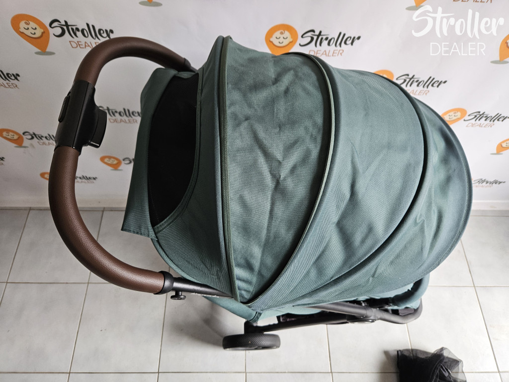 Nagy XL-es kupolával rendelkező, fordulékony sport babakocsi. Háttámlája több fokozatban dönthető, alváshoz is kényelmes. Színe nagyon szép zöldeskék. Egyszerűen összecsukható is kinyitható. Alsókosarán az egyik patentnél van egy anyaghiba, fotóztam. 6 hónapos kortól 4 éves korig használható.
